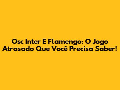 Osc Inter E Flamengo: O Jogo Atrasado Que Você Precisa Saber!