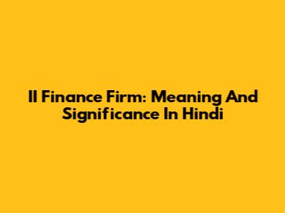 II Finance Firm: Meaning And Significance In Hindi