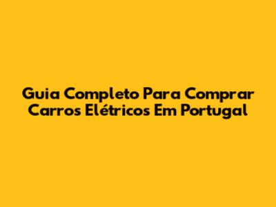 Guia Completo Para Comprar Carros Elétricos Em Portugal