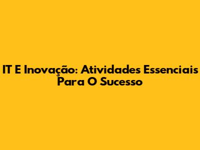 IT E Inovação: Atividades Essenciais Para O Sucesso